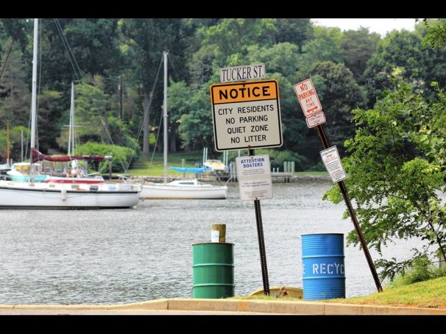 We left Annapolis at 0500 after eleven days, now bound for Hampton, VA. While anchored in Weem’s Creek, we met friendly neighbors the first day on Five &Dime, and had convenient access to a little “beach” area where all the cruisers pulled up their dinghies. There were trash barrels, a park bench, and several telephone pole pilings just at the high tide mark, which is about two feet from the end of the street. The trash is emptied by city workers every day. The close abutting homeowners look after us to offer help when a stubborn outboard refuses to start. Nobody would ever be concerned about security. Boaters are the lifeblood here. It is almost surreal. Like riders into town we’d tie our horse bridles to the post, and mosey our way into the nearest saloon.
