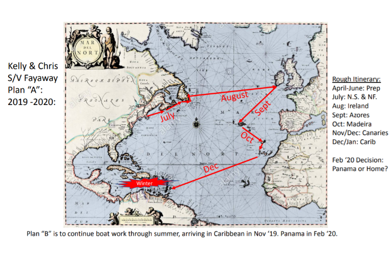 Fast forward to late January 2019: we decided to make use of our extra year to do a shakedown cruise north and east across the Atlantic, via Newfoundland, Ireland, the Azores, Canaries and back to the Caribbean by December. We purchased charts and cruising guides, and carefully plotted the trip. We monitored ice flows, and studied the timing of them early in the upcoming summer. We planned an early June departure. However, this plan may have been too aggressive.