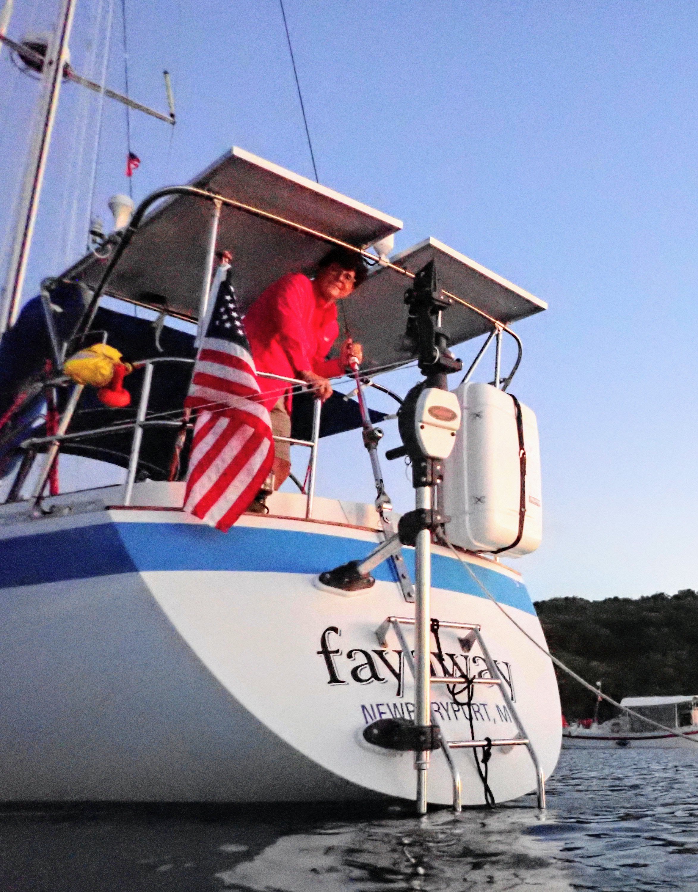 Each time a large quartering wave hits Fayaway, it causes the stern to kick out, creating a challenge for whoever or whatever is steering. Increased steering energy is required to keep the ship’s wheel moving to counteract the wave motion. While Fayaway has a fairly robust steering system, and is easily balanced under sail, she still needs someone (or something) to help maintain a straight course under challenging conditions. And he/she/it needs to steer 24/7.