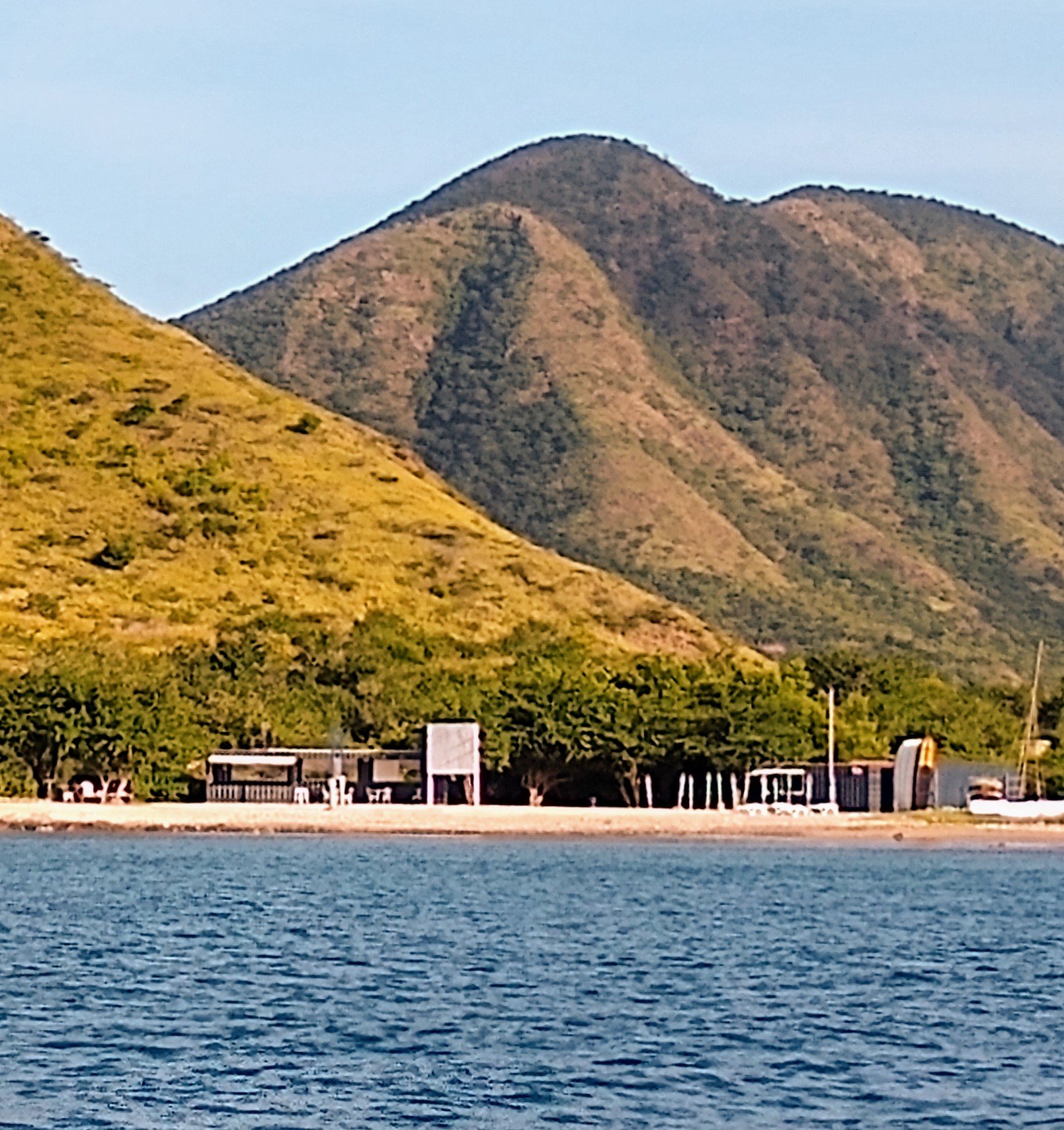 As I mentioned, it didn’t seem difficult to beach the dinghy. But getting back into the surf is another story. We’d done this before, so kinda knew what we were in for – expecting to get wet. Recall what I mentioned earlier about the South wind making the anchorage rolly? Turns out it wasn’t so difficult to get back out into the surf, but we needed to get the motor started quickly else be washed back onto the beach.
