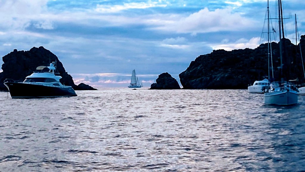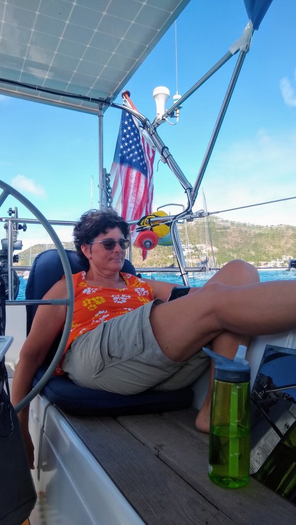We often pass the Island Time hours reading while sitting in our shaded cockpit. On the water, no amount of friendly waves, from our modest 35-foot sloop over to their 30-foot captained tender, can stir a friendly wave in return. They’re too much in a hurry to run over the bobbing sea turtles and get from their superyacht to the Chanel store! We know we aren’t invisible because the regular folks anchored around all pause and wave to passers-by.