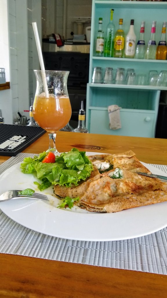 Since our basic lifestyle hasn’t changed, we still enjoy eating out. We see this as a way to immerse ourselves in the local culture. No fancy American style bistros for us. We favor the smaller venues where locals go. We find them by asking store clerks and bartenders. We track down local specialities. The fish sandwich served on raisin bread in Bermuda? To die for! Stewed salt fish and fungie ( a Caribbean polenta) found on Antigua? Yes, please! Pepperpot from a roadside stand. Goat roti. All wonderful!