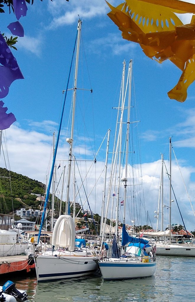 Suffice to say we’ve had enough of Sint Maarten, and so only beyond that island is where I’ll focus in this post. Departure starts with fond farewells as we cast off lines from Simpson Bay Marina, waiving thank yous to our most recently acquired friend Howard, with his beautiful Alden 42, Hoka. Actually, the name is a acronym combination for he and his wife, Catherine.