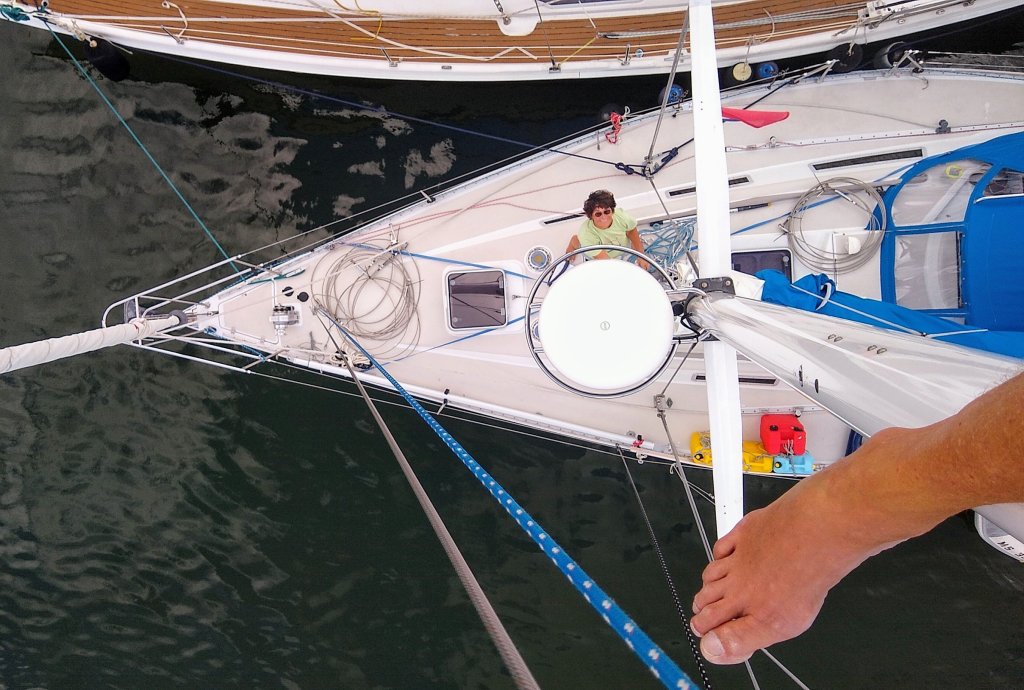 Fast forward to now, only a few days of island hopping and snorkeling later, we sit here watching ghost white charterers clumsily reaching for mooring lines in Little Harbor, on the island of Jost Van Dyke. Hey, that was us once! We’re on the first mooring since Saba (no choice there, and too rocky to anchor here). We’ll take a rest for a few days before clearing out for Culebra. Refrain: What a long strange trip it’s been!