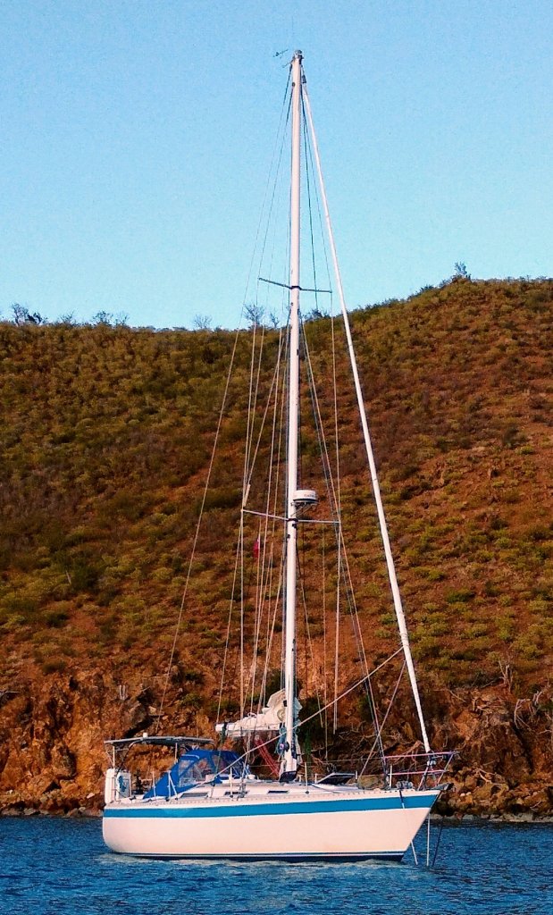 We’ve just touched bottom (just-literally and touched-figuratively, at least via anchor) at our 15th distinct island since leaving Virginia last November 1st. We’re going to stay put here in the BVIs for another week (oh darn;), allowing us to suck a few more warm breaths of sunny air into our salty lungs, and with which to air-out our fair vessel, swim around the boat and enjoy a few longer walks ashore. I’m reminiscing and reflecting from the point we left Dutch Sint Maarten until now. It seems that every hour flies past with mind numbing lack of memory. But every minute we have here is of the most enjoyable. Funny how that works.
