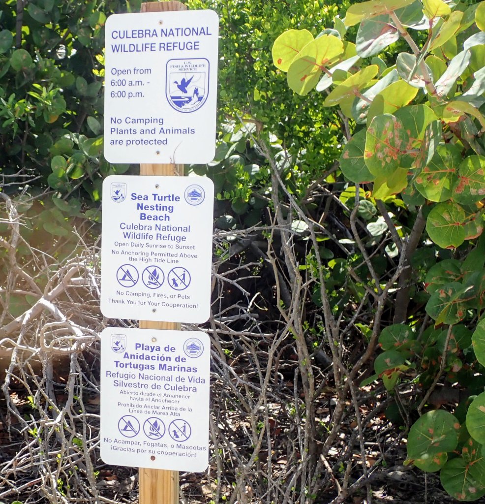 “Culebrita is my favorite island!” is a refrain we heard from several cruisers. So we thought Little snake, if my newly acquired Spanish serves, could be a nice stop. It’s a small island, about one mile by one mile. It’s uninhabited but in the care of Caribbean Islands National Wildlife Refuge Complex. The signs look just like those on Plum Island (the Massachusetts one) and reminiscent of home.