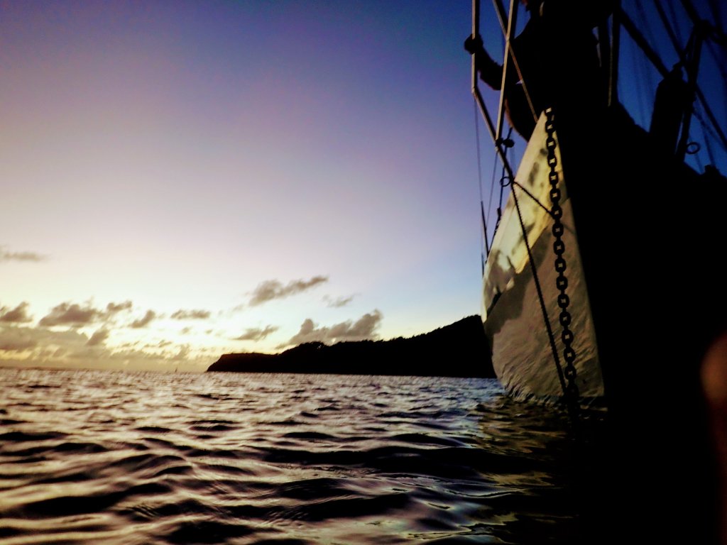 We’re out in the environment constantly, living aboard a focal point, rich with fascinating sensations. As I observe the sun slowly peaking over the silhouette hills of an eastern shoreline, I vaguely hear road machinery, hillside goats, chirping (and gahawing) birds, and crashing surf from ashore. Oh how I wish I could capture in writing the subtleties to share with you! Never mind the awe-inspiring night sky! I’ll attempt to describe at least some context of the daily atmosphere herein. Please read along with your imagination. This gets deep, I’ll warn you!