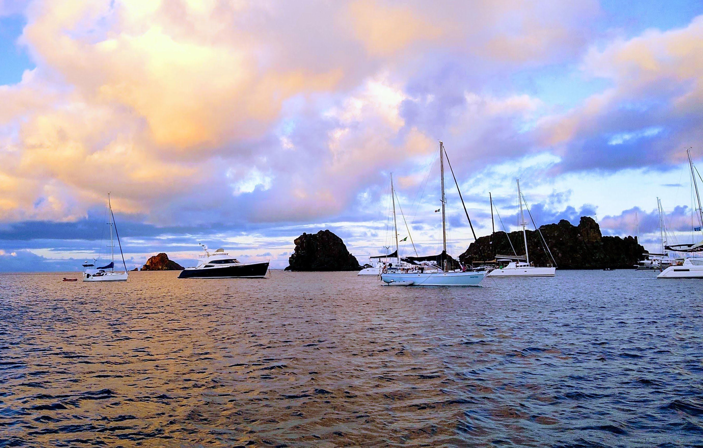 - Sunrise and sunset, incredulous as the ubiquitous rises and falls near the horizon. Second only to finding anchorages for shelter from wind and waves, a choice location with a view is considered a bonus, and seems we are treated to the beauty more often than not! See gallery at the end of this post for a sampling of shots we’ve taken just during the past few months.