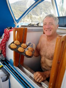 - Do you hear that groan of the top rudder bearing as Fayaway rolls over each swell? Guess I’ll dig out that silicon lube again. Give it another pffft spray.