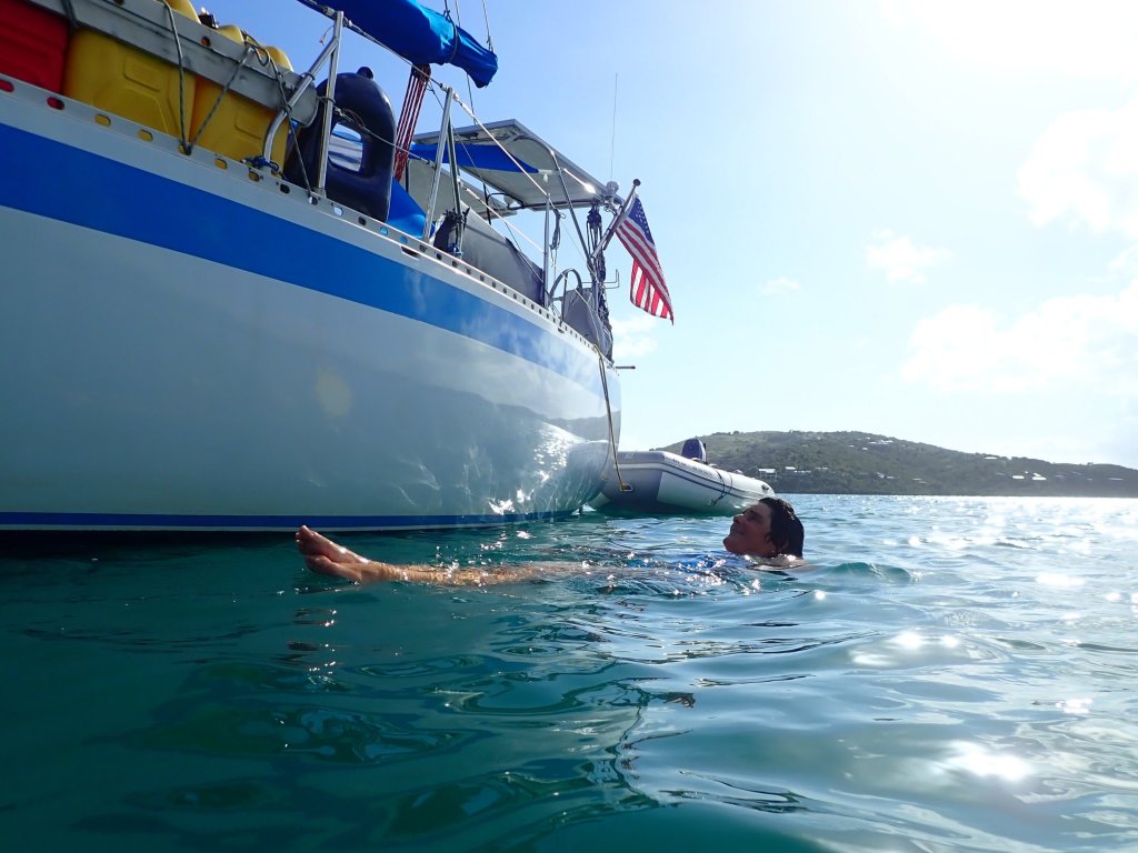 Puerto Rico has established strict anti-social (social-distancing) ordinances. Some marinas are open for fuel and food, as long as prior arrangements are made. CBP (US Customs) allows US citizens to gain entry as normal. However, local jurisdictions may (and do) implement stricter rules. No boats are allowed into Culebra, where we are, except those providing essential services. Hence, why we see Mr. Cade every morning. We are not allowed to move Fayaway except to leave the island. If/when we choose to leave, we cannot return. One of us (not both) may only go via dinghy to land if to get food. We can’t go for a walk for fear of invoking any local wrath. Fortunately, we still have a full tank of cooking propane, and otherwise haven’t used any other fuel. But we can swim! And so to stretch our legs, we do many laps around Fayaway.