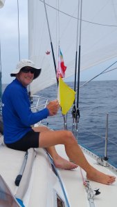 So we had left Culebra in our last post. Now we’re nicely making way into our passage northwest – at least for a few days and nights toward the point of East Bahamas marker at 26N 68W. Wind was just aft of starboard beam, and Fayaway is really screaming along at 7-plus knots, flying a deeply reefed main and not always, but often full genoa. Glorious sailing. This is what it’s all about, I often say, when sailing conditions are ideal. A pleasant combination of sailing and surfing over the following swells – on this giant surfboard.