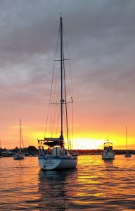 We provisioned early on a Tuesday morning, stuffing as much as possible into the trunk of our twenty year old two-seater. I locked up the little sports car, hoping it was parked safely on ground high enough to avoid being flooded during an upcoming lunar tide. We stowed provisions and caught the ebbing river flow, where the mighty Merrimack spit us out, to be free again in the Atlantic. Our goal that day was to simply sail twelve miles at a course of roughly 50 degrees, out to Gosport Harbor at the Isles of Shoals. One of our favorite local hangouts. We enjoyed a pleasant afternoon on a borrowed mooring, listening to birds, water breaking on the rocks, happily isolated with a good book, watching the sun set slowly into the crimson western horizon.