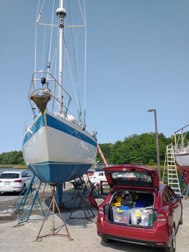 The next couple weeks Kelly and I spent moving out our possessions accumulated during 18 months of life aboard. Several carloads were made to and from Maine. Believe it or not, we have trouble finding places to put it all! Amongst the clothes and assorted electronic and other sailing gear to remain in our possession, we have months of canned and dried food, bottled beverages, and gallons of emergency bottled water.