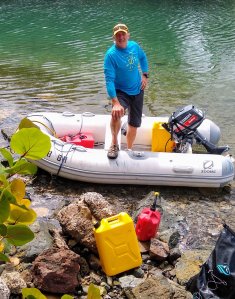 We had enough of being repeatedly stranded beachside, so we googled and researched, and spoke with many fellow cruisers, about what would be our ideal dinghy motor. We felt that our dinghy “Korykory” is adequate as-is, so the inflatable would not be replaced, at least not anytime soon. We were advised that two-stroke engines, prized for their beneficial low-weight-to-power ratio, were available for sale in Saint Martin. (They’re illegal for sale in the USA; some BS about little lawnmowers being responsible for smog). We weren’t necessarily planning to visit Saint Martin up until this point, as it is a busy, heavily traveled island. But we really wanted a new motor, and so we convinced ourselves it was time for a visit to a new island.