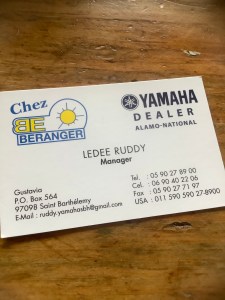 We followed through a narrow entryway, up a narrow staircase, and then as he meandered through the dusty narrow corridors crammed with various power equipment. After some ensuing small talk about why he was there on such a holiday, we learned that he manages the establishment. We asked if he had any in stock, and then to quote a price for the desired motor – a brand new two-stroke, eight horsepower, Yamaha Enduro. After some Dutch mumbling, shuffling a bunch of papers and tapping a few computer keys behind his service window, he read the price out loud. I did a double take after a quick Euro conversion (and I quickly asked him to write it down). His quote was five hundred dollars lower (yes, $500 less!) than a previously quoted price I’d received from the dealership in St Martin. Hmmm… Could this really be? (Everything else in St Barts is more expensive). “What, do you want to pay more!?”, he smiled and grumbled to me when asked if he was sure about the price.