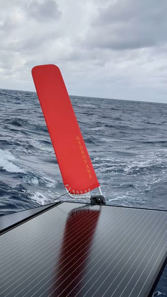 Anyway, back to the topic at hand. Cutting to the chase, Vinny (da Vane) didn’t get along well with his close neighbor, Colossus the solar panel. We had sailed over 1700 nm and couldn’t use the clanking piece of junk 90% of the time. I tried moving the port side panel as far forward as possible (about 1.5 inches), until just about hitting the boom! Still no dice.