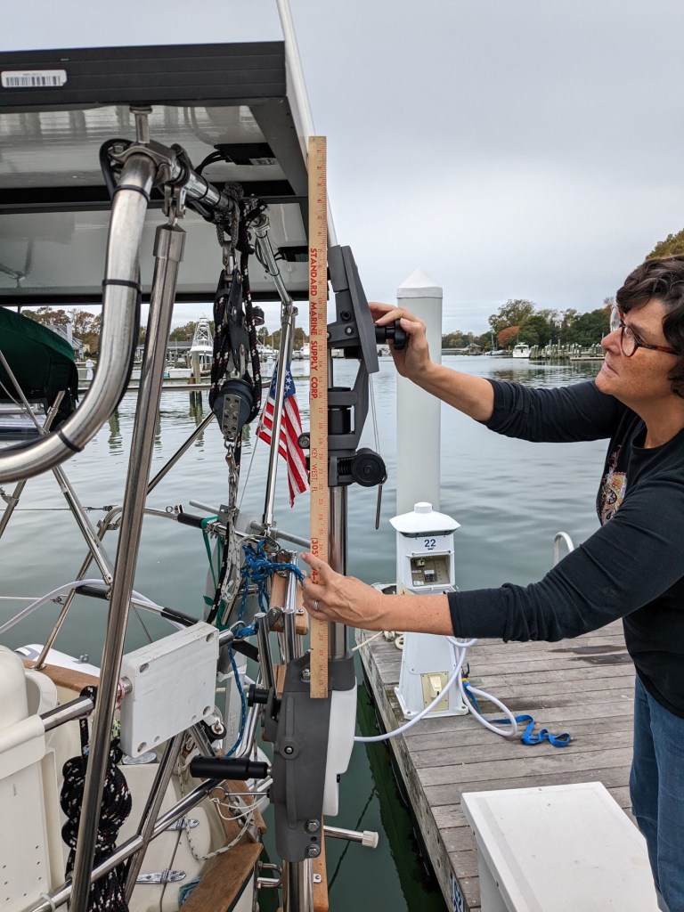 I measured a few more times to make certain. After only a couple hours, we replaced the colossal panel with the shorter version, and reduced our overall power generation potential from 750 to 635 watts. But now we have a working wind vane! Yay!
