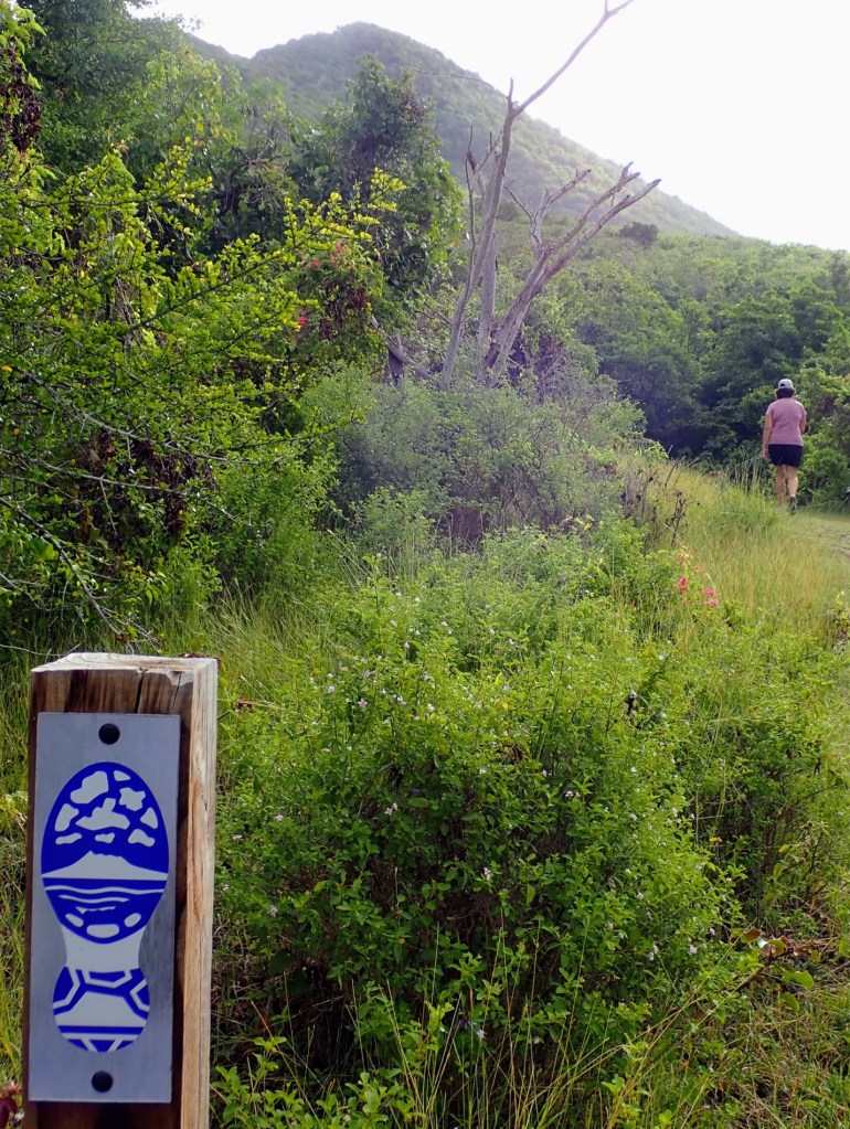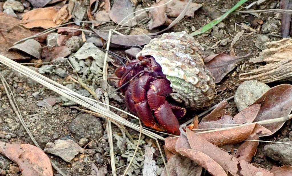 We remain fascinated by countless hermit crabs found so far up the hill, sometimes on trees. Prodding along with their long antennae, one might say, “the place is littered with them!”. Easily startled by our walking, they snap into their shells so quickly, lose footing and roll down and across the trail, making themselves very obvious. I doubt we’d even notice most if they’d just not move! Making a chirping sound if you pick one up, we saw varying sizes from one half inch to four inches long. Hermit crabs live in vacant seashells, that they continually exchange (upsize) as they grow. We found them more than a mile from any shoreline. So where do they get the shells? Do they walk back to the beach? Fight each other? It’s a long way for these little vagabonds to walk every time they want to “move”!