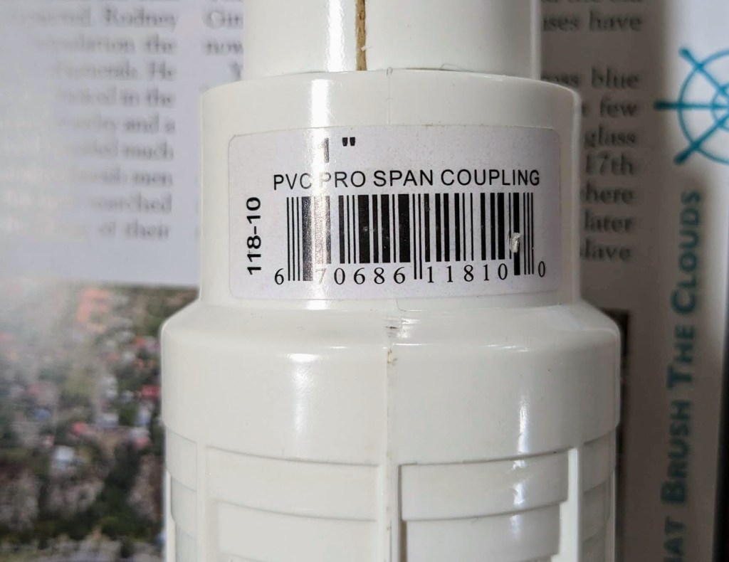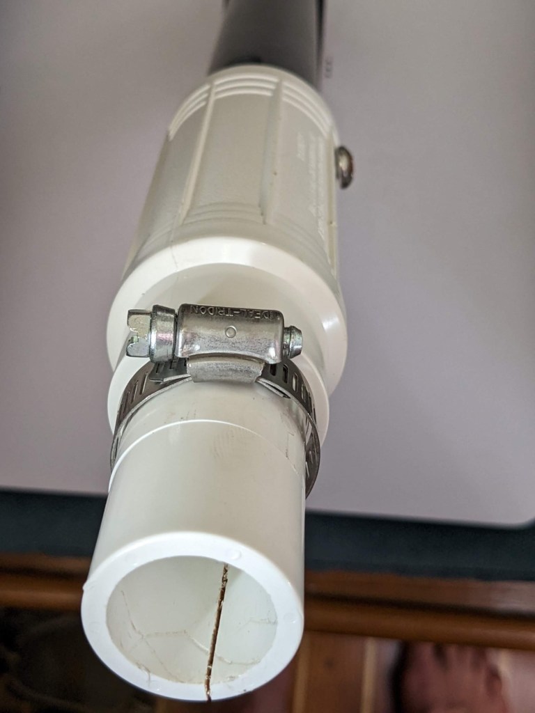 I found a $6.99 pvc pipe repair coupler from Ace Hardware which seemed to fit almost perfectly, along with a few leftover bimini parts.