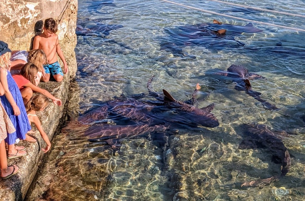 Excitement was in the air as we began to meet up with fellow cruisers for the first Salty Dawg Exumas Rendezvous. Having been strewn about the Caribbean for the prior several months, a pleasant reacquaintment began with beverages, heavy hors d’oeurves at the Staniel Cay Yacht Club. Early that evening, fishermen were cleaning conchs and snapper by the dock, allowing children and adults alike to feed nurse sharks who also enjoyed our company.