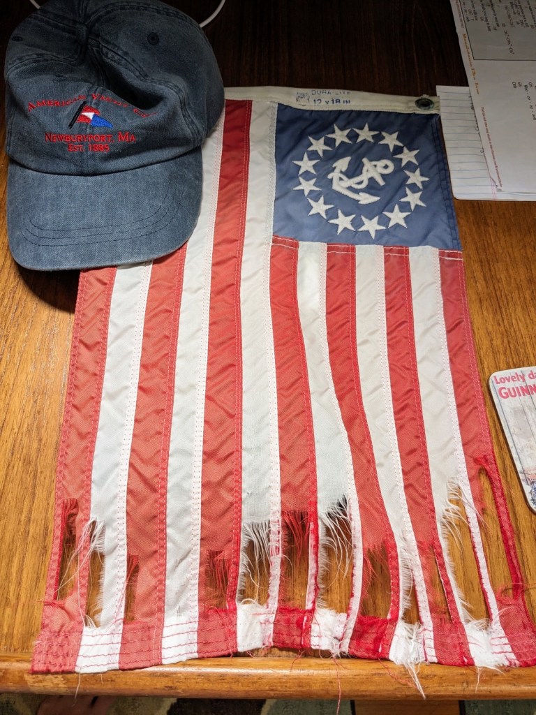 And it’s not just systems spares we carry! Having displayed our origin for several thousand ocean miles, our little flag was recently retired and its replacement hoisted in time for our country’s birthday celebration.