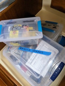 Is this enough? But how many extras are enough? We ask ourselves, “What major systems can’t we live without?” Engine? Watermaker? Rigging? Lighting and communication? Steering? Then trickle this up to what parts or supplies are critical for each of these systems to remain operational? And what is possible to replace ourselves? Which would you choose?