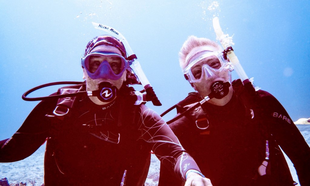 Welcome Dive: We all got a tank of air right away that afternoon, which allowed us to reacclimate with warm water and try out our relatively new equipment. It had been six years since Mike and Mary’s last dive, previously with decades of experience and hundreds of dives. To these two great friends, scuba diving is like returning to riding a bicycle.