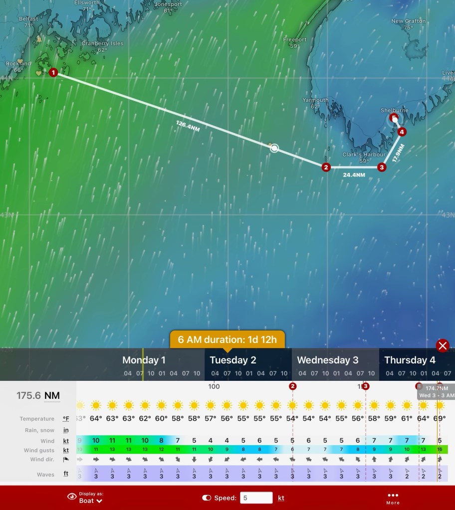 Timing the tidal currents off Cape Sable was part of the plan. The Cape Horn of Nova Scotia, as it’s called, is shallow, and tidal currents rip back and forth at 2.4 knots. I tried to time our approach such to maximize currents in our favor, but the length of time needed to get around is longer than the tidal frequency. We fought against less than we received a boost, so we’re chalking it as a net gain!