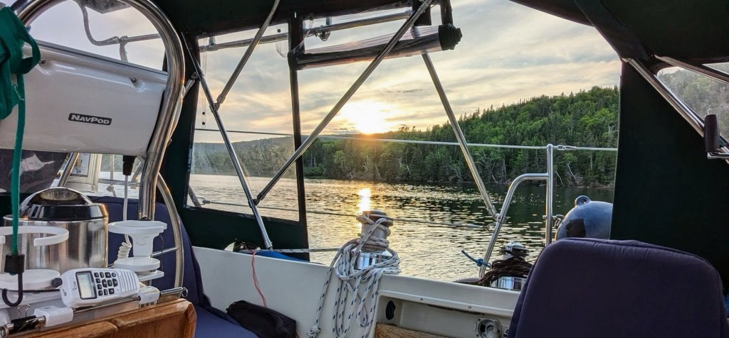 After spending a couple recuperating days visiting St Peters, reprovisioning and enjoying conversation with the jovial Marina manager Gerry, we cast the mooring line, meandered back east past the canal entrance and on toward the larger portion of The Bras D’Or Lakes.