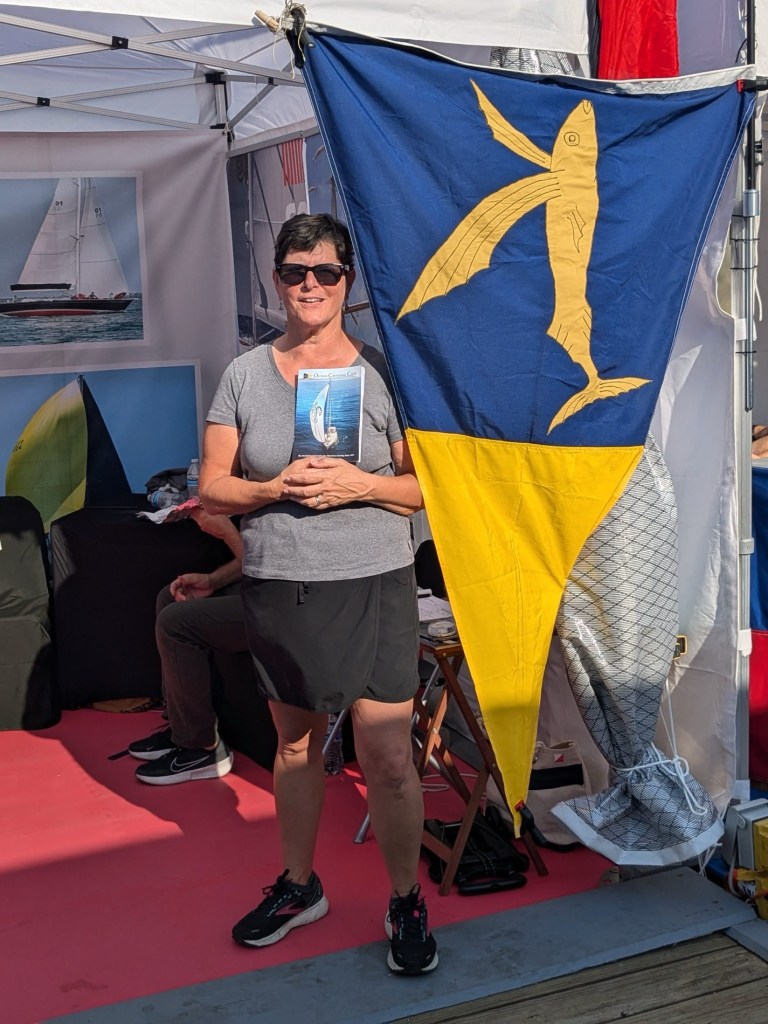 Kelly works the crowd for sign-ups, as we volunteered at the show for Ocean Cruising Club (OCC) booth.