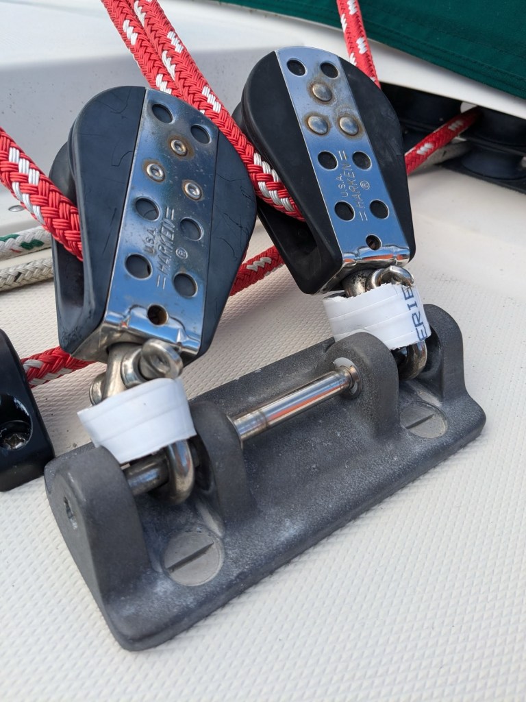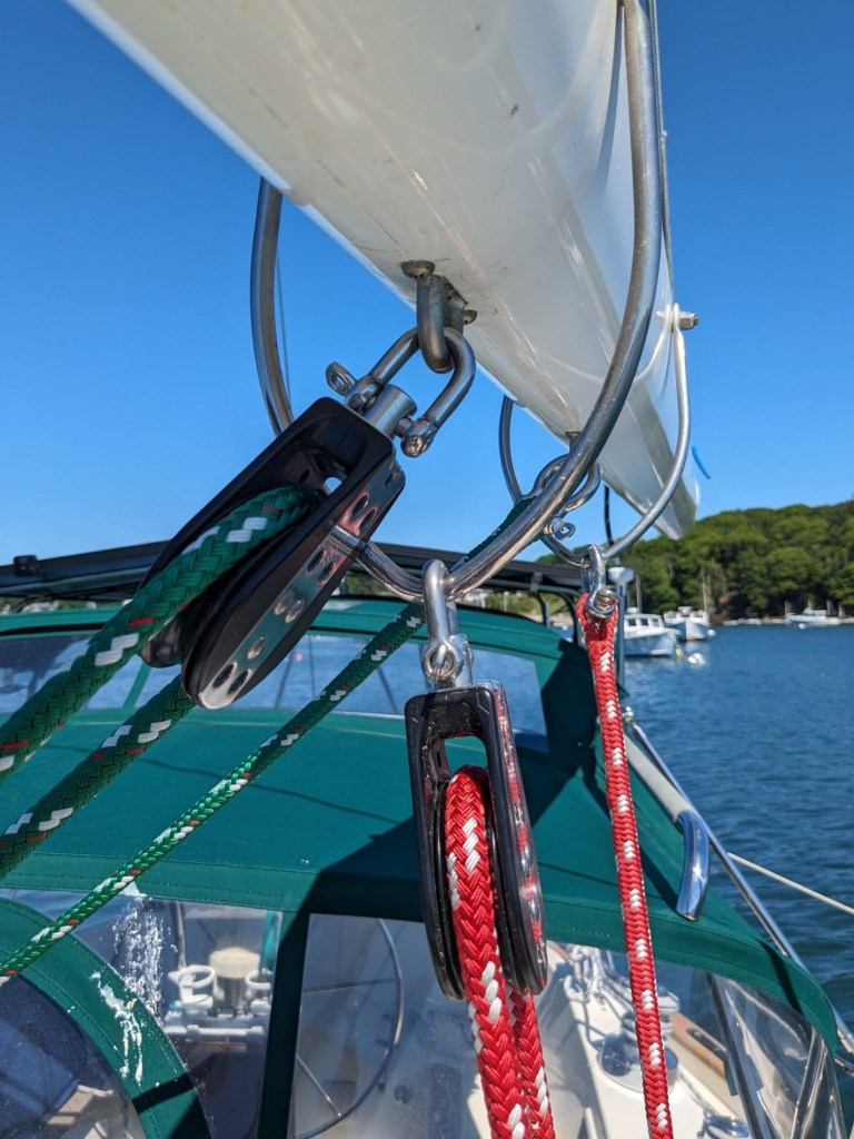 In a recent post, Seven Doo Dads, I briefly mentioned converting over from one to two independent mainsheets, and eliminating the traveler.