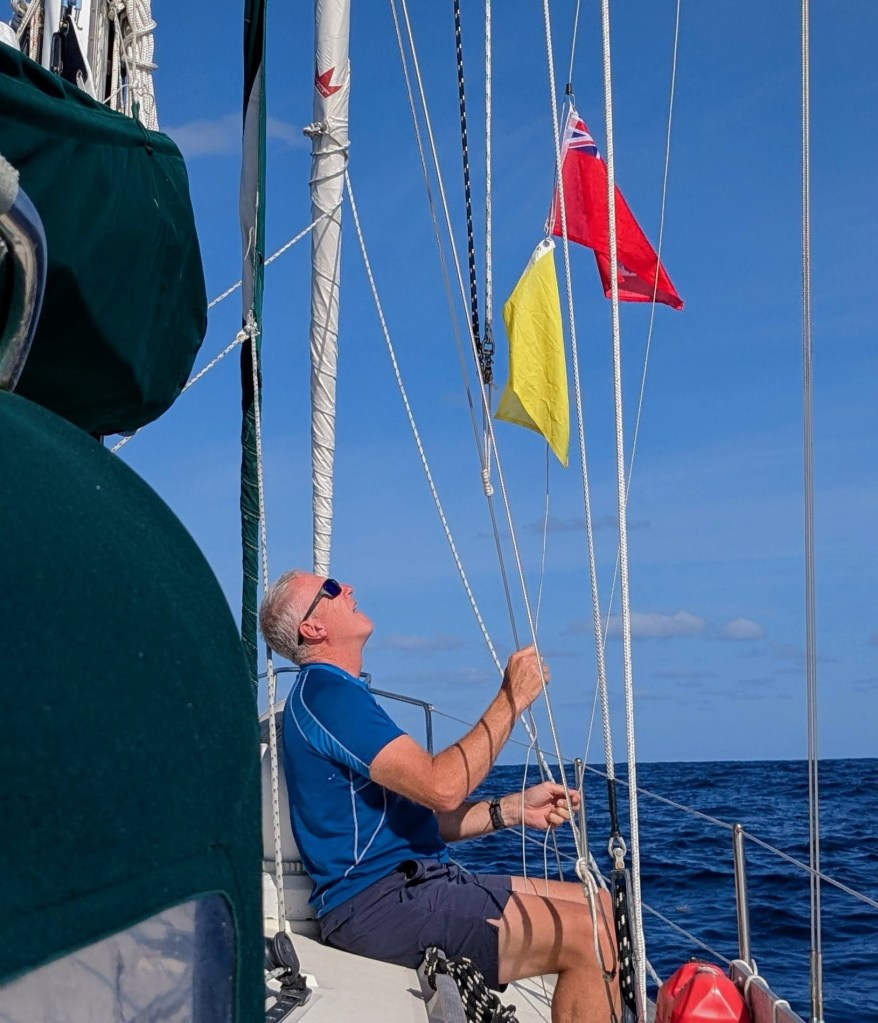 Monday morning arrived, readiness renewed, and with one more exchange of correspondence with Commanders’ our window remained a “go”. So Kathy accompanied me to the Customs office to obtain our clearance papers. With the usual excitement building before a long passage, we hauled the outboard, lashed Korykory aboard and made ready for departure. Kelly began hauling the anchor.