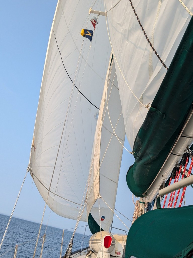 • Sailing quality and flexibility. She points well and easily holds course. Two headsail furlers, for genoa and staysail provide easy setup for diverse weather conditions. Again, a winner here too. She’s quite easy and forgiving to sail.