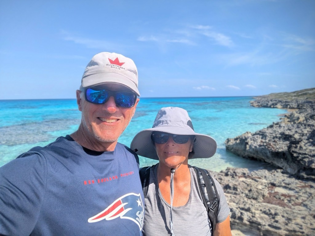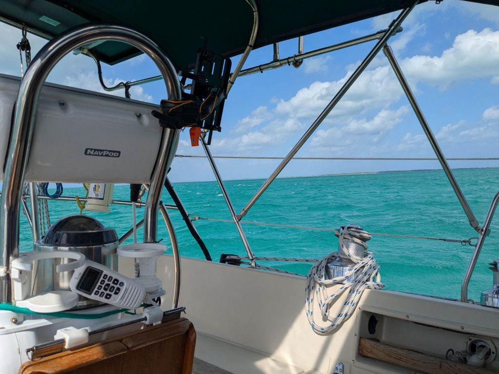 Preface: Kelly and I approached the shallows of Hog Cay as typical: cautious, watchful of electronic and visual cues of both bottom indicators and of nearby boats. Wind usually blows from the east, and so boats tend to cluster in more protected anchorages on the western side of Caribbean islands.