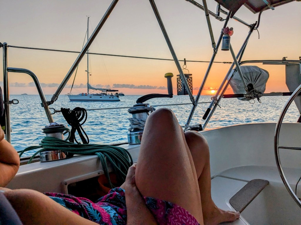 Suffice to say that we decided to stay aboard this day, ever-watching for familiar (or at least more friendly) boats and simply enjoyed another incredible sunset. We pulled up anchor, returning back to find and anchor near friends that evening at Johnson Cay a few miles north.